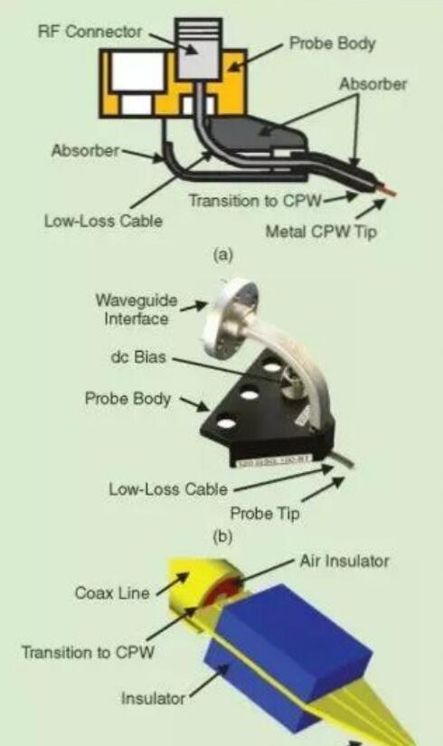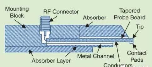 EM场分布图的转换是由处于单个探针组装内的若干个射频过渡措施来维持的。一个传统的射频探针是由下列几个部分组成的: