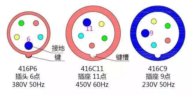 应用电压、频率不同,连接器的接地脚位置也随之不同。