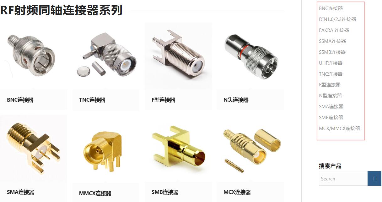 3.射频连接器:SMA和TNC连接器;德索官网上已上传了大量的SMA和TNC连接器,有需求的用户可以直接在导航上进入相对应的产品专题页面。