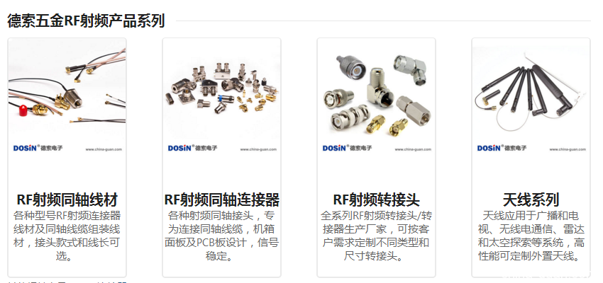 德索五金电子专业从事射频同轴连接器研究、生产、制造工作,已有十三年的经验沉淀,所有产品均通过ISO认证,远销海内外。了解德索产品详情,进入https://www.china-guan.com/products/rf产品频道,多款射频同轴连接器转接器供您参考。
