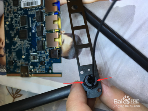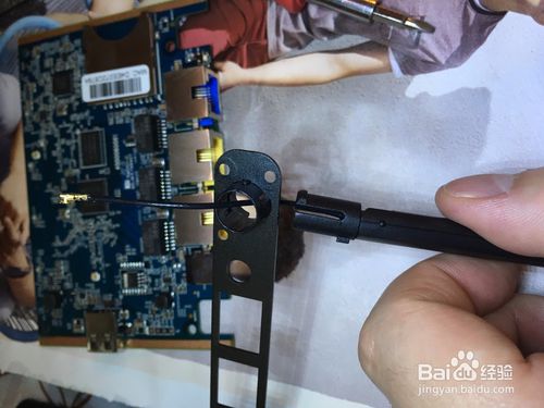 把挡板靠近路由板子,连接ipx接头,要对准用力压一下,有“啪”的声音就紧了。