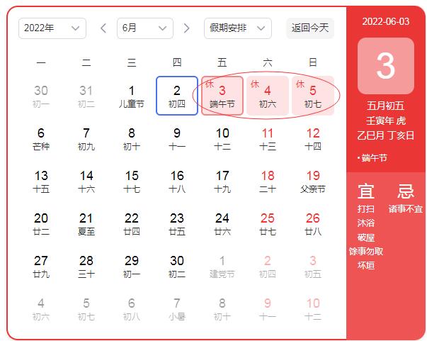 一年一度的端午节再次来临,德索连接器在这里恭祝您端午幸福安康。同时也感谢所有新老客户对我们一如既往的支持和信任。根据国家相关部门关于2022年端午节放假规定,结合我公司实际情况,现将2022年端午节放假相关事项安排如下:我公司于6月3日至5日放假,共3天。6月6日正常上班。