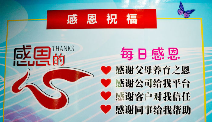 学会感恩对自己的身体健康,家庭、企业、社会都有好处;因为当你有一种感恩心态的时候,心里是平衡的、气是顺的,心里即使有些失落,会去勇敢的面对,对你身边的人、家庭、企业、社会不会造成伤害。当你遇到不高兴的事情和失败有一种抱怨心态的时候。心里是不平衡的,恼怒的,所谓气大伤身就是这个道理,有时甚至对你身边的人、家庭、企业、社会会造成很大的伤害。-为了员工的身心健康 我们组织了感恩活动。