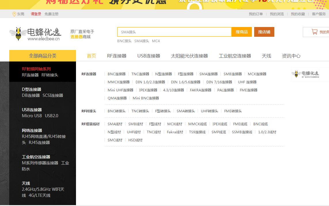 本公司推出一个全新商城,电蜂优选(Elecbee.cn),在此商城上,有着全品类的连接器产品,用户可以直接下单,进行一站式采购。商城上展示的产品均通过了ISO认证,符合国际环保要求,承诺所有用户一年内免费质保。同时商城也已开通微信服务号,关于电蜂优选公众号:elecbee,即可在微信上下单,让您的连接器采购过程更加方便快捷。