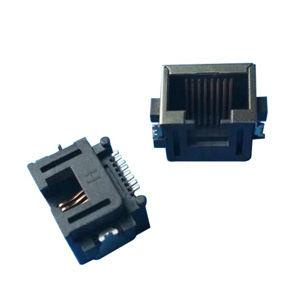 RJ45插座屏蔽90度2插板带柱/CU壳带屏蔽扁针8P迷你母座X3