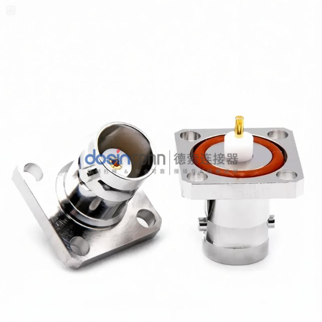 BNC-KFD3M射频连接器BNC四孔法兰母头机箱固定式带防水圈
