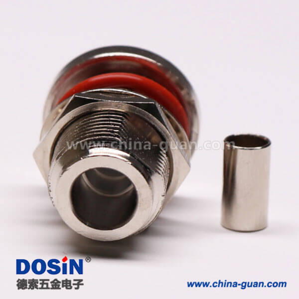 射频同轴连接器N直式母头压接式接同轴线缆带防水圈