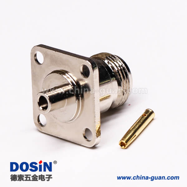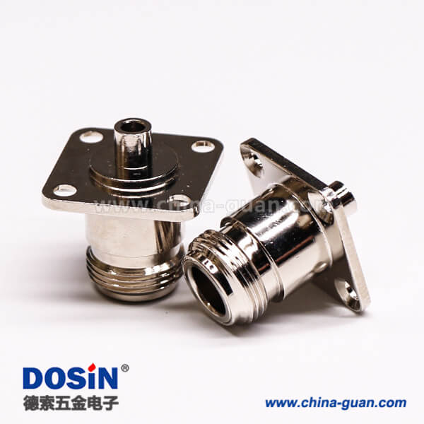 法兰N型射频接头rf直式母头四孔法兰焊接式