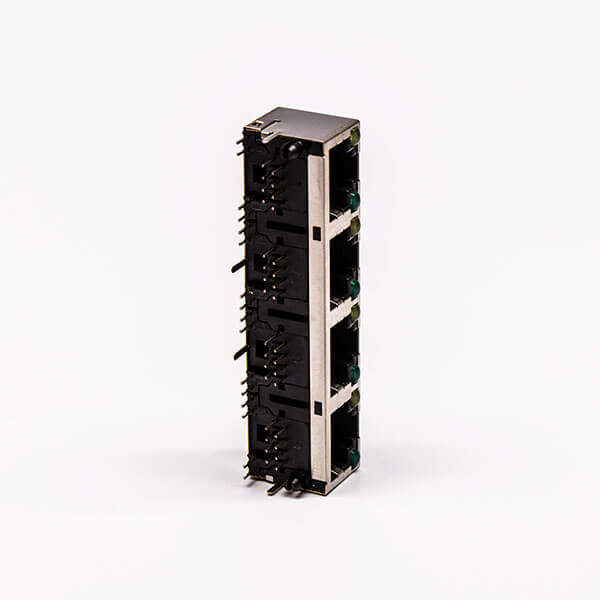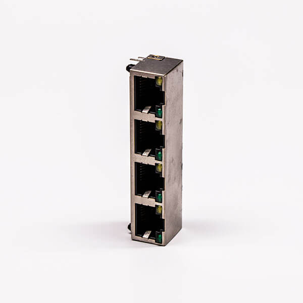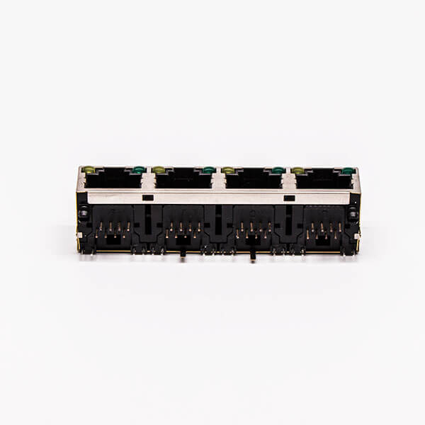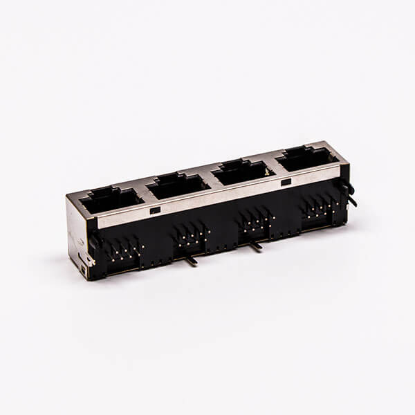 料号:DOSIN-819-0514 标签:RJ45,母座,PCB板,8P,四口,弯式,带屏蔽,不带灯,铜壳