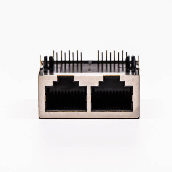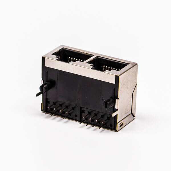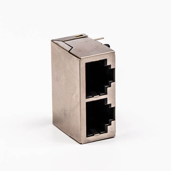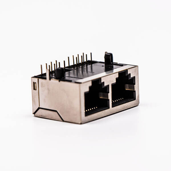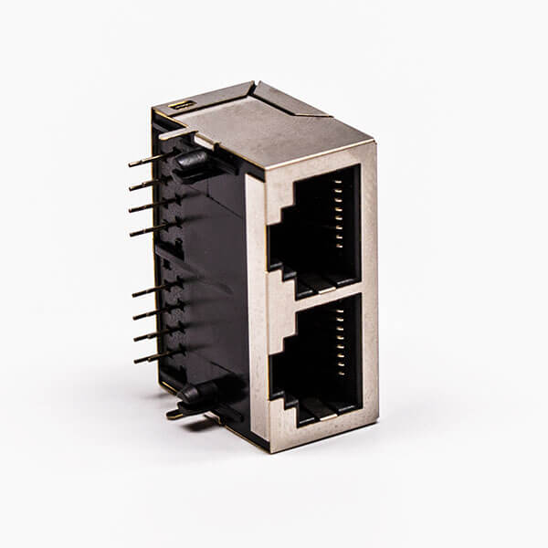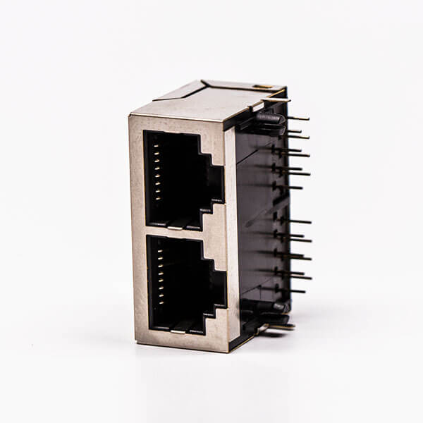 料号:DOSIN-819-0529 标签:RJ45,母座,PCB板,8P,双口,弯式,带屏蔽,不带灯,不带弹片,铜壳