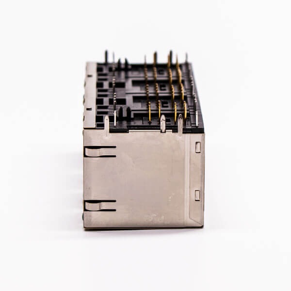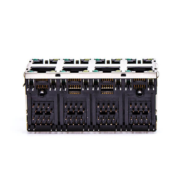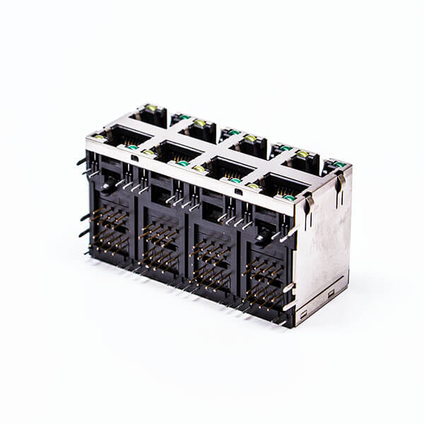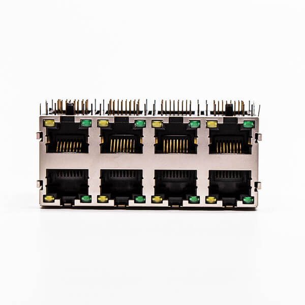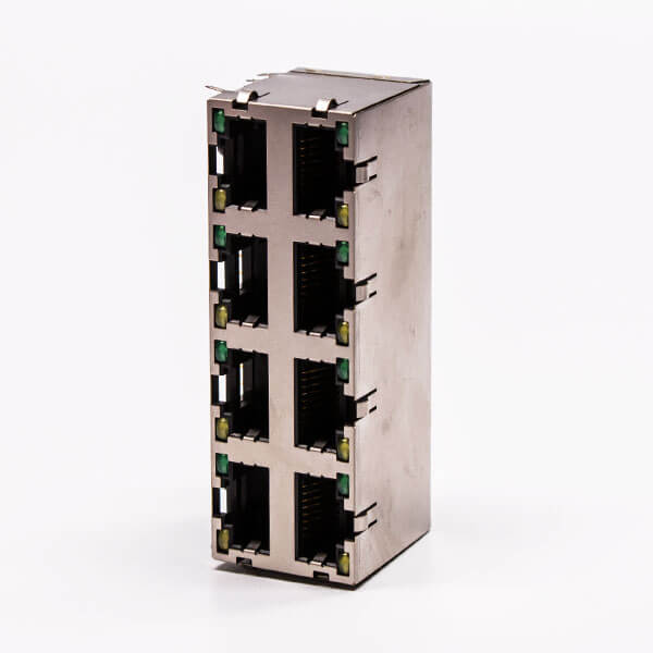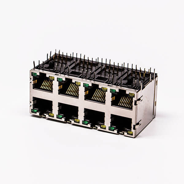 料号:DOSIN-819-0532 标签:RJ45,母头,PCB板,2*4,双排,8口,弯式,带屏蔽,带灯,带弹片