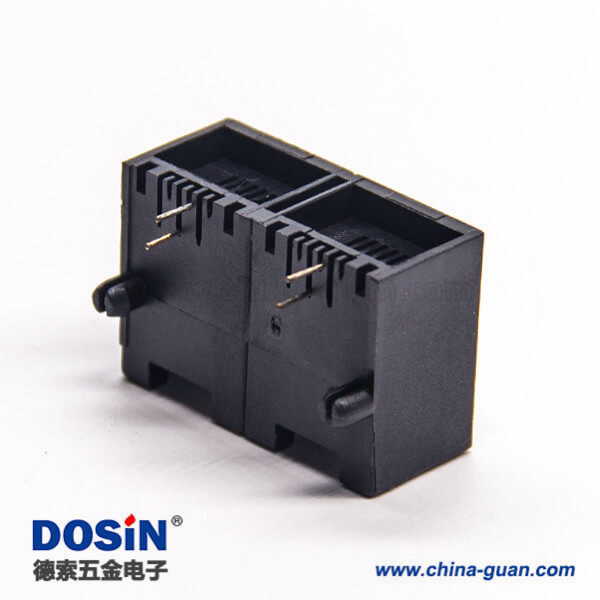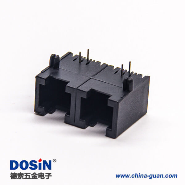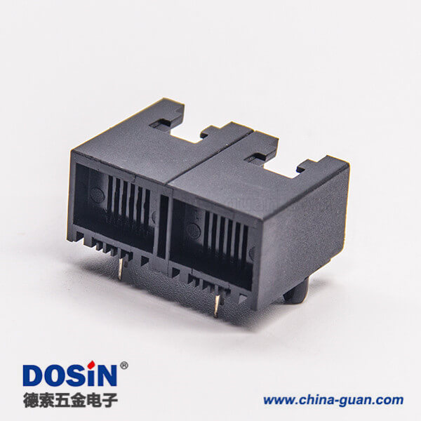 rj11双口1*2弯式6p2c模块化连接器黑色全塑外壳插板
