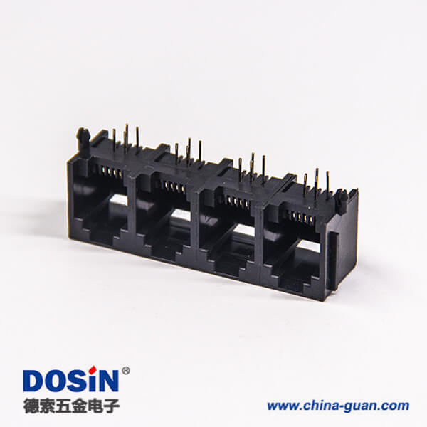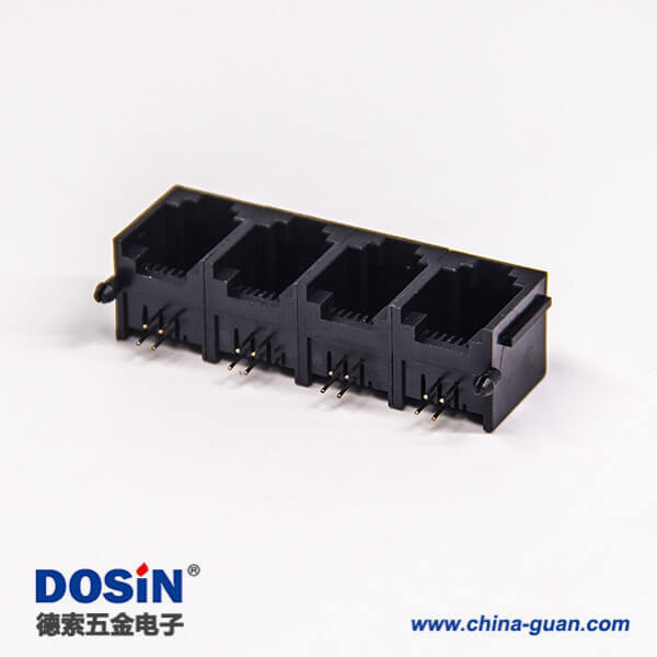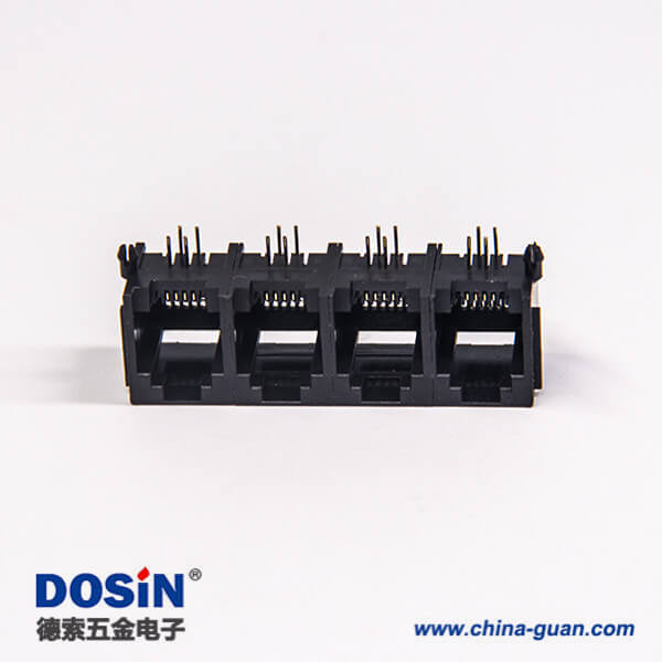 标签:RJ12插座,6P4C,4端口,1*4,弯式90°,触头镀金,插孔,PCB板安装,非屏蔽,不带灯,不带滤波