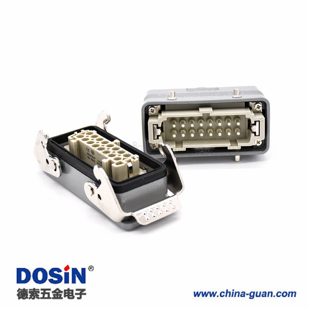 标签:H16B重载连接器,开孔安装,顶出口,铁扣,四耳,双扣,公母对接,16芯,镀银,PG21