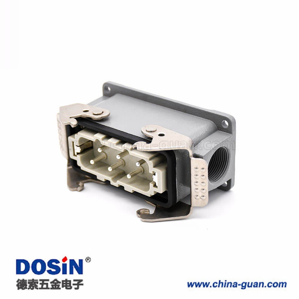 标签:H16B重载连接器,表面安装,斜出口,铁扣,四耳,双扣,公母对接,6芯,镀银,M25