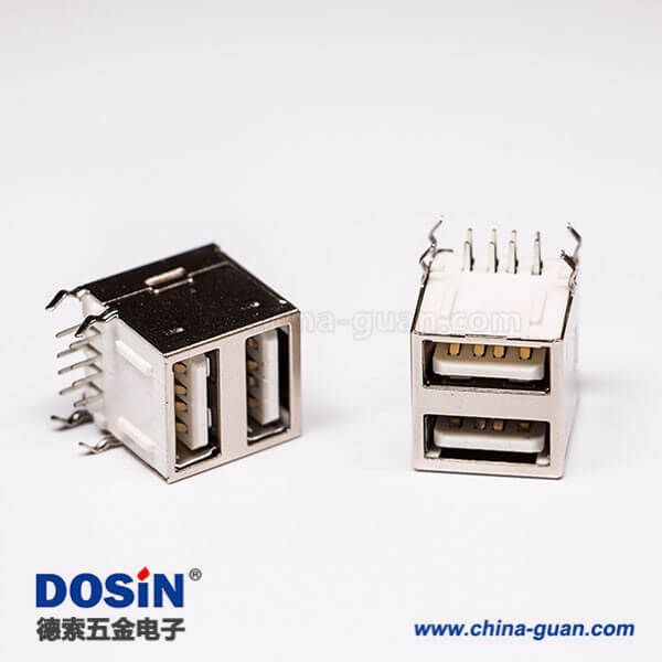 标签:USB2.0,母头,双端口,弯角,黑色胶芯,插板,Type A,接PCB板