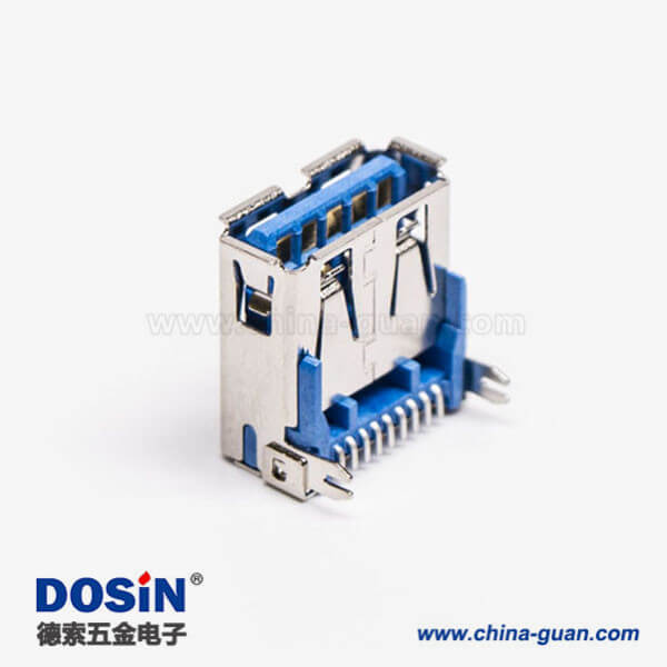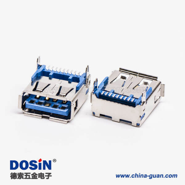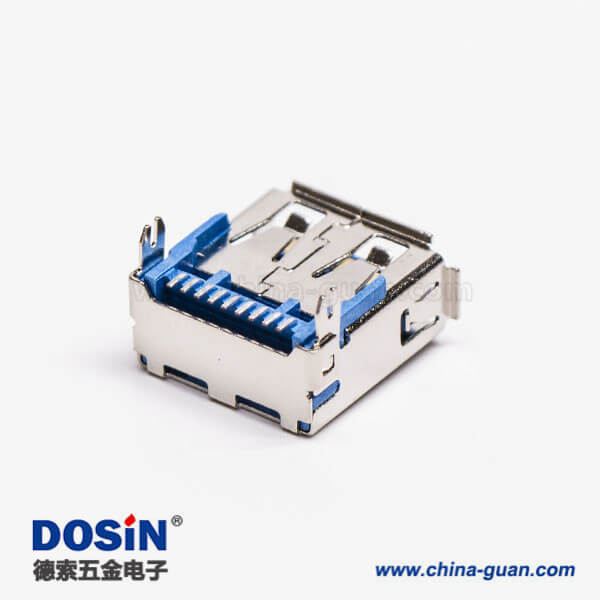 标签:USB3.0,Type A,母头,弯头,SMT,贴板,蓝色胶芯,PCB板