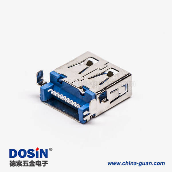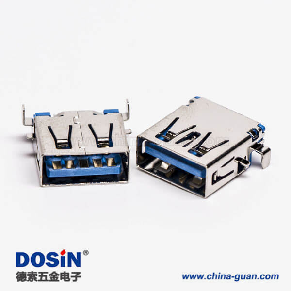 标签:USB3.0,Type A,母头,弯头.沉板,SMT,蓝色胶芯,PCB板,两脚插板