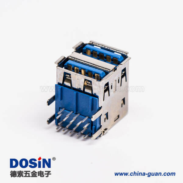标签:USB3.0,Type A,双端口,母头,弯式,插板,DIP,蓝色胶芯,PCB板