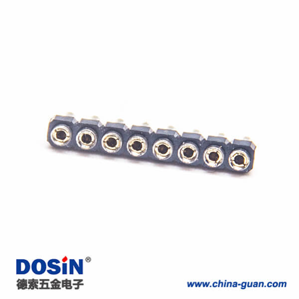 料号:DOSIN-863-0553 标签:排母连接器,母头,直式,180度,8Pin,2.0mm,单排,圆孔,插板,焊接,镀锡,黑色,H1.2mm,圆形