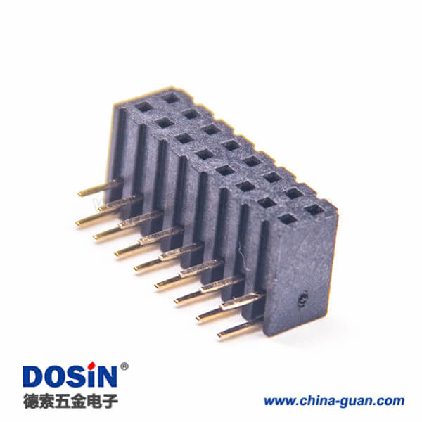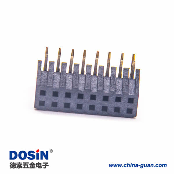 料号:DOSIN-863-0557 标签:排母连接器,母头,弯式,90度,16Pin,2.0mm,双排,插板,焊接,镀金,黑色,H7.2mm,方针