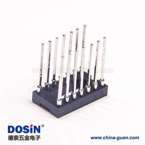 料号:DOSIN-863-0568 标签:排母连接器,母头,直式,180度,14Pin,2.54mm,单排,圆孔,插板,焊接,镀锡,黑色,H3.0mm,圆针