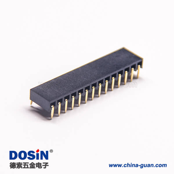料号:DOSIN-863-0569 标签:排针连接器,公头,弯式,90度,14Pin,2.54mm,单排,插板,焊接,镀金,黑色,H3.4mm,方针