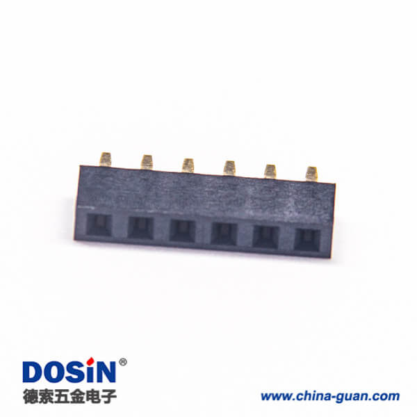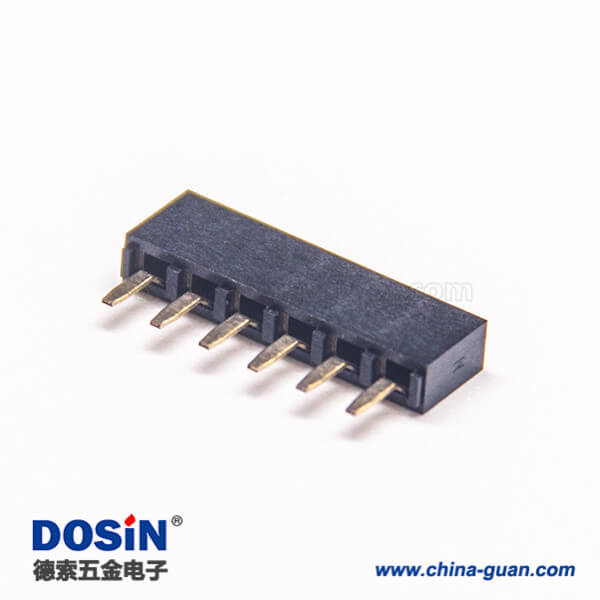 料号:DOSIN-863-0570 标签:排母连接器,母头,直式,180度,6Pin,2.54mm,单排,插板,焊接,镀金,黑色,H5.0mm,方形