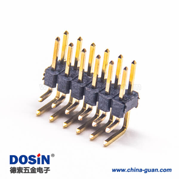 料号:DOSIN-863-0576 标签:排针连接器,公头,弯式,90度,14Pin,2.54mm,双排,插板,焊接,镀金,黑色,H2.5mm,方形