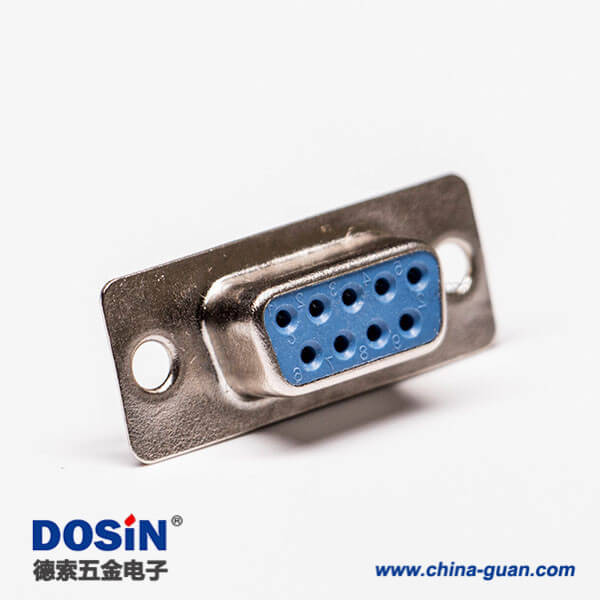 9针D-sub接口母头直式蓝胶冲针接线连接器