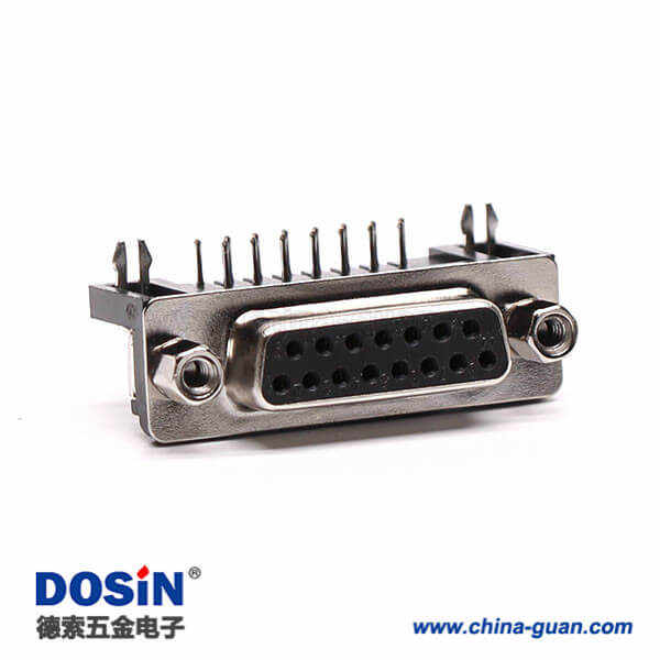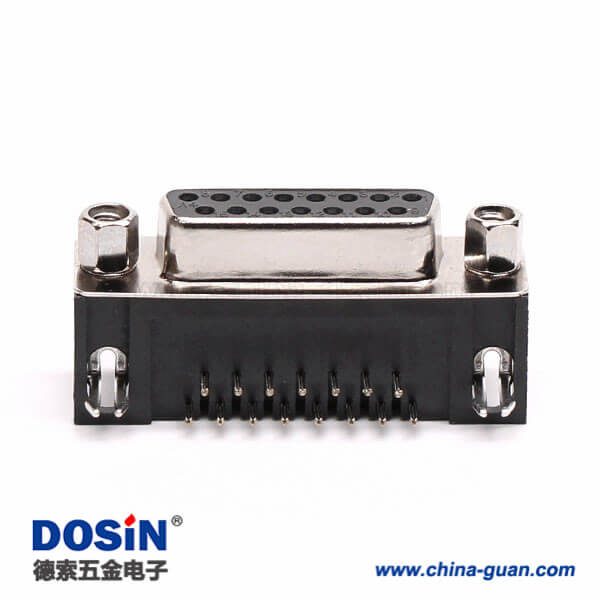 料号:DOSIN-868-0107 标签:D-sub,标准型,15 Pin,弯式,母头,黑胶,穿孔,接PCB板