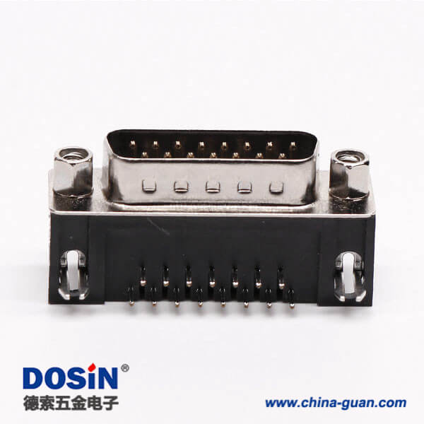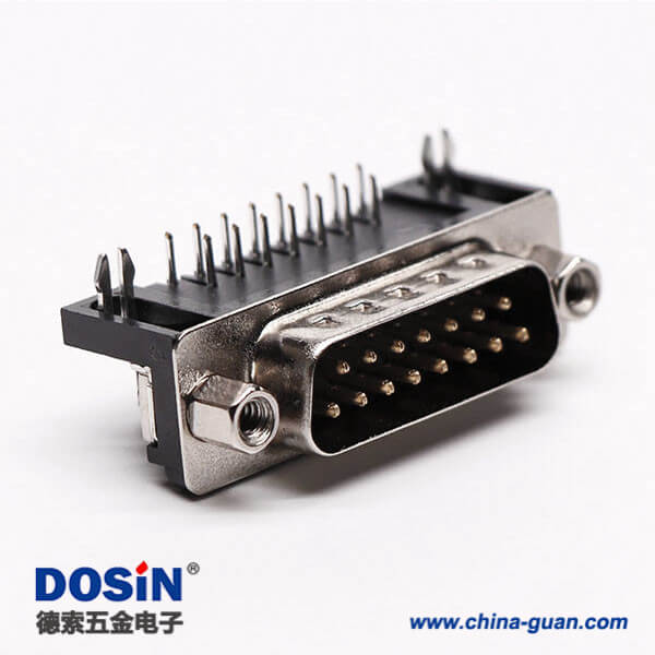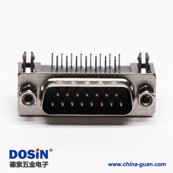 料号:DOSIN-868-0112 标签:D-sub,标准型,15 Pin,弯式,公头,黑胶,穿孔,接PCB板