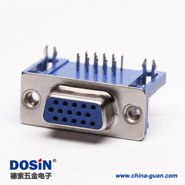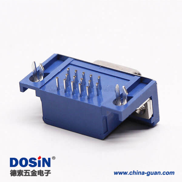 标签:D-sub连接器,高密度,弯头,公头,15针,三排,铆锁不带螺丝,穿孔,插pcb板,蓝色胶芯
