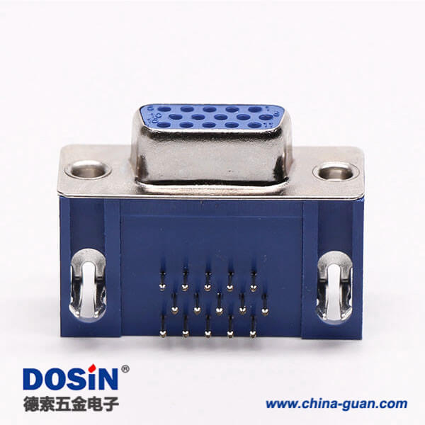 db15母头连接器弯式蓝色胶芯焊板铆锁不带螺丝