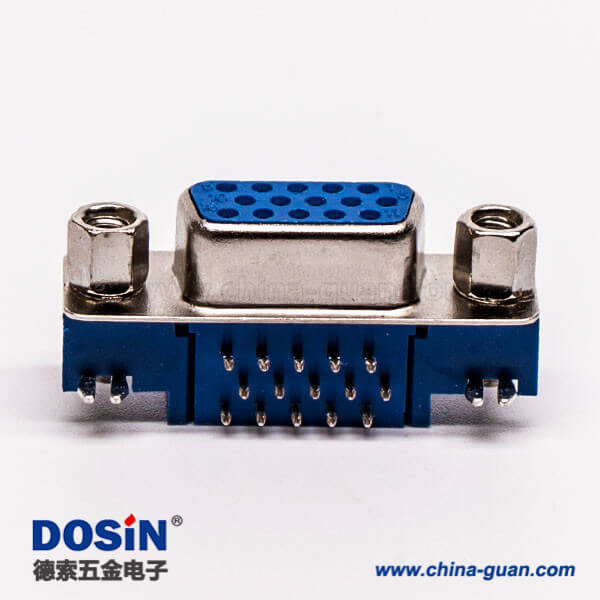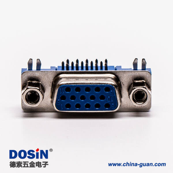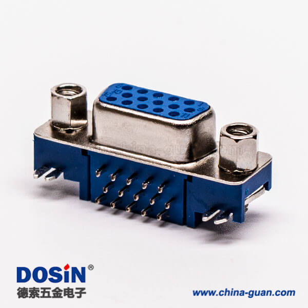 料号:DOSIN-868-0178 标签:D-sub连接器,高密度,弯插,母头,15针,铆锁,穿孔,插pcb板,蓝色胶芯