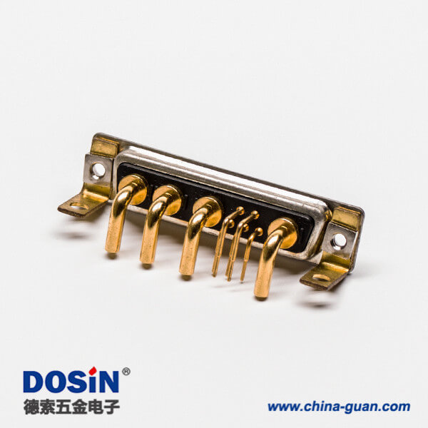 标签:混合型D-sub,9w4,大电流,弯式,母头,插孔,PCB板,焊板,支架
