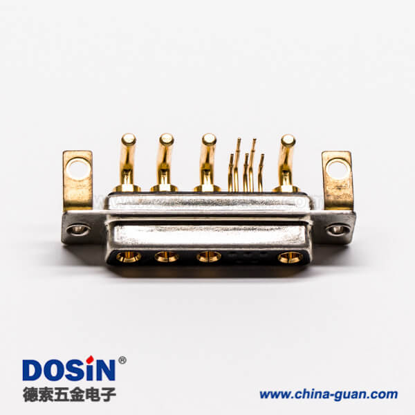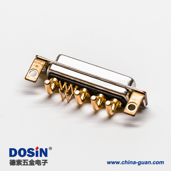 D SUB大电流连接器9弯式焊板带支架铆锁母座接PCB