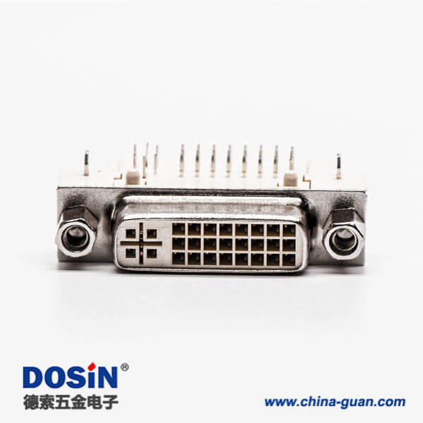 料号:DOSIN-868-0274 标签:DVI-I 连接器,母头,弯头,24+5,白色胶芯,带鱼叉,穿孔,接PCB板