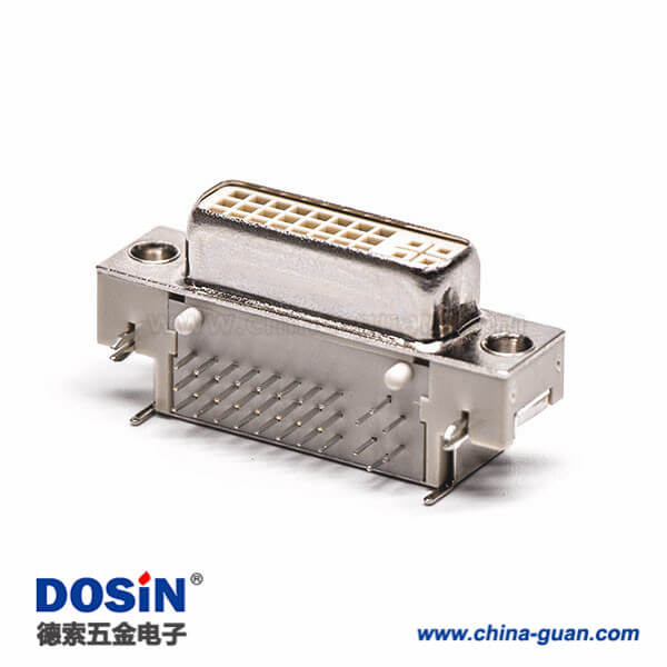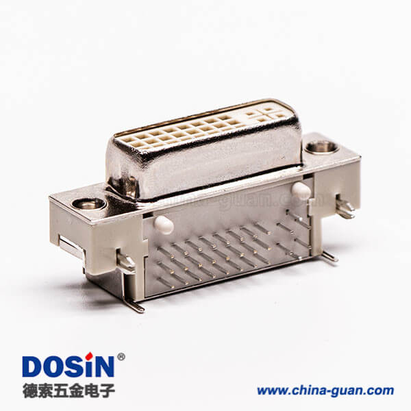 料号:DOSIN-868-0279 标签:DVI-I 连接器,母头,弯式,24+5,插板,接PCB板,带螺母,白色胶芯,带鱼叉