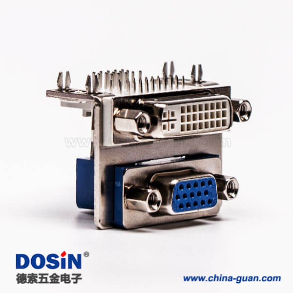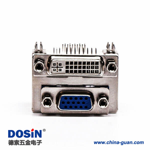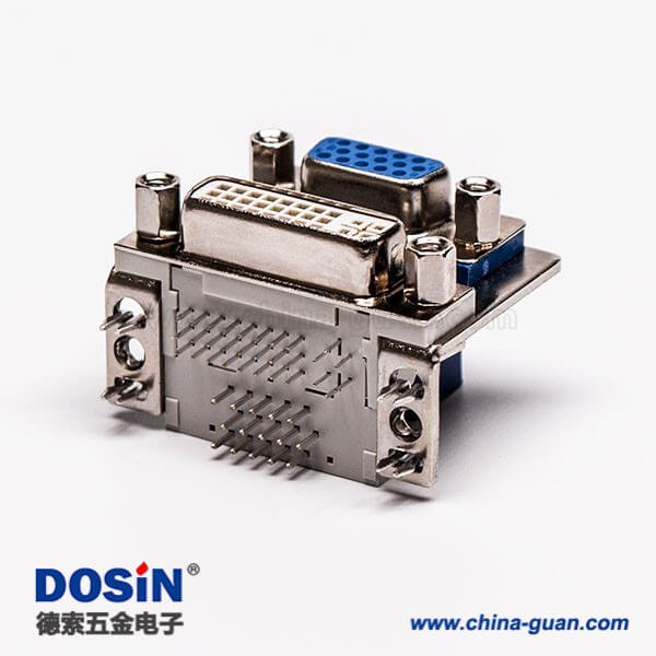 料号:DOSIN-868-0289 标签:DVI-I 24+5,DB高密度15针,双胞胎,母头,插板,接PCB板,鱼叉脚,铆锁,弯头