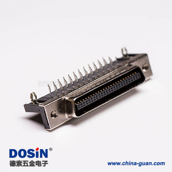 50针scsi接口90度弯角母头带鱼叉脚插孔接PCB板