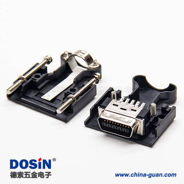 scsi连接器20p公头MDR黑色塑料外壳螺丝式焊接接线