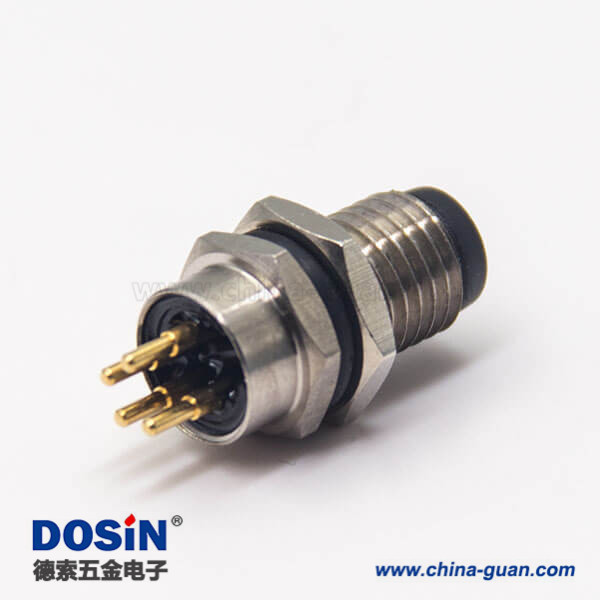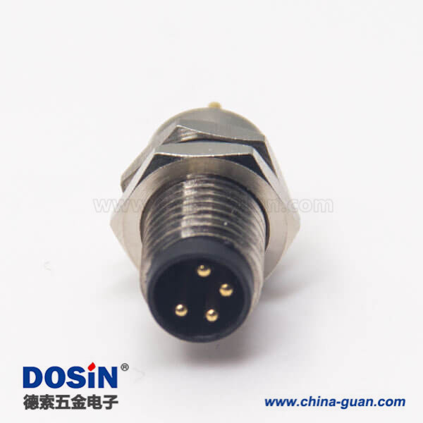 料号:DOSIN-868-0520 标签:M8,4芯,板端插座,公头,直式,前锁板,面板安装,插PCB板