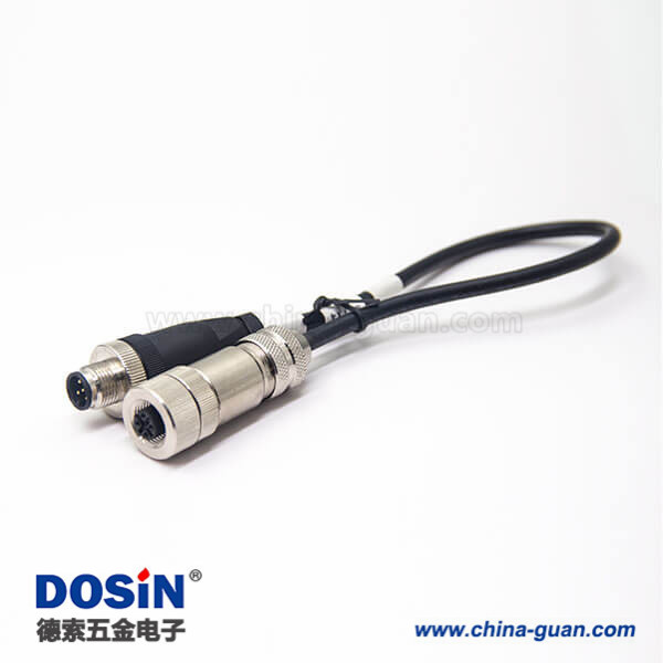 接插件 M12电缆五芯公头转全金属母头直式带屏蔽