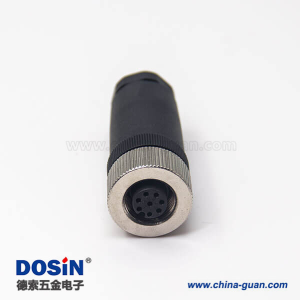 料号:DOSIN-868-0598 标签:M12,组装接头,D编码,8芯,直式,母头,接线,螺丝锁线,不带屏蔽