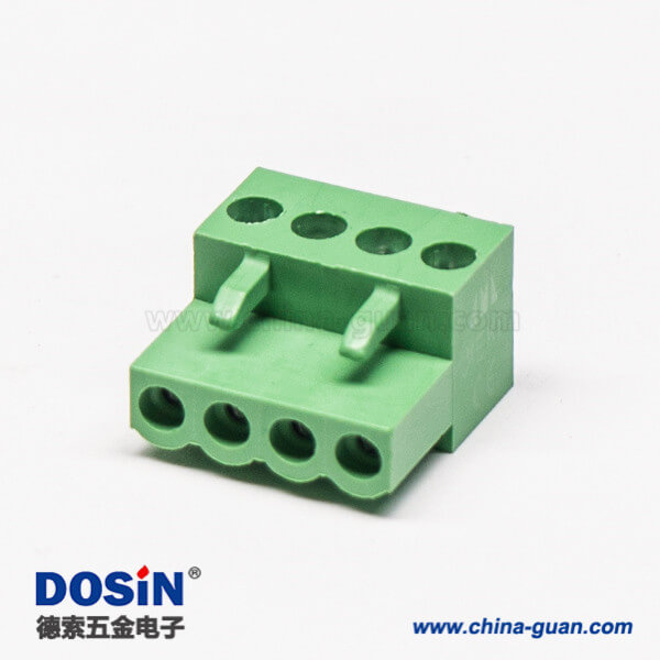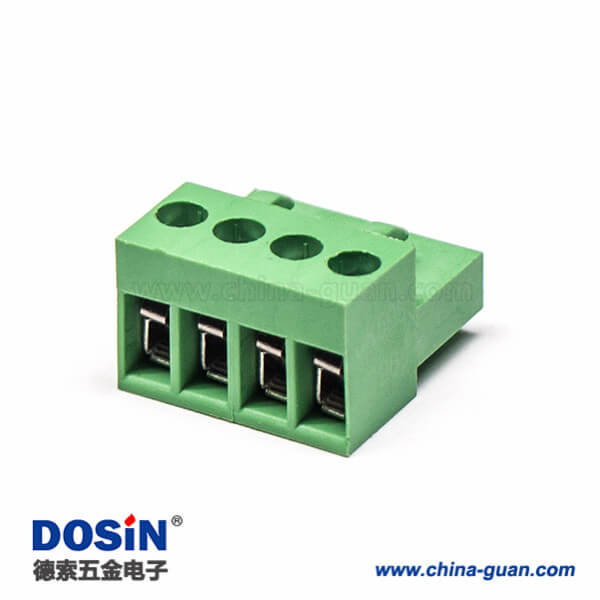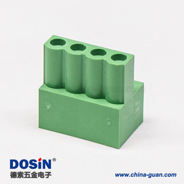 料号:DOSIN-871-0106 标签:插拔式端子,绿色,弯式,4芯,300V,20A,5.00mm,插孔,螺钉夹紧