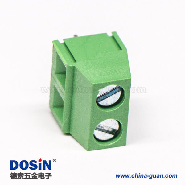 PCB端子绿色螺钉式2芯直式穿孔插PCB板