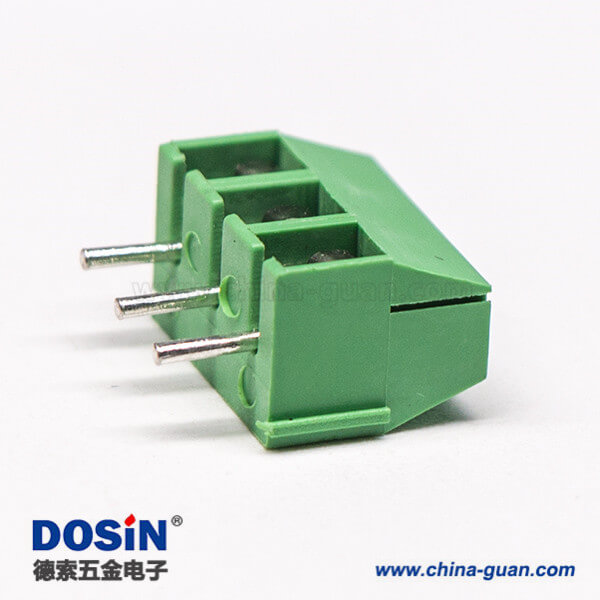 绿色端子座螺钉式3芯穿孔式插PCB板