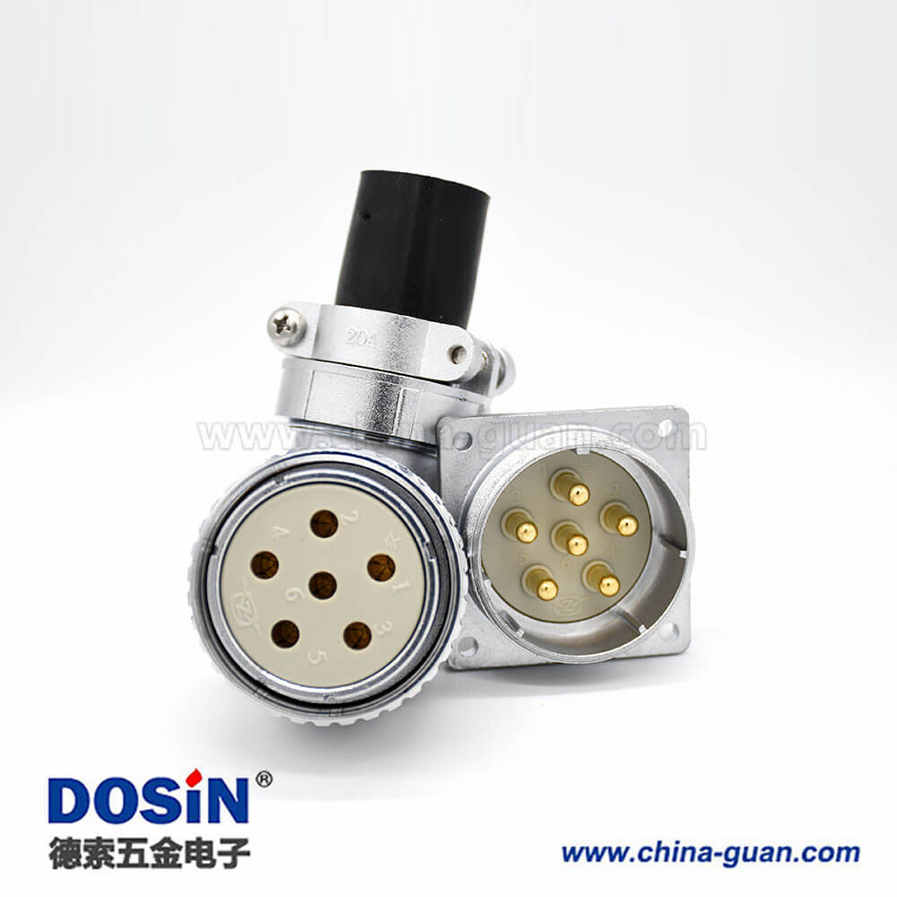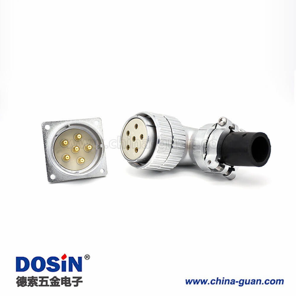 插座母插头P48 6芯公头方型法兰插座母头接线连接器