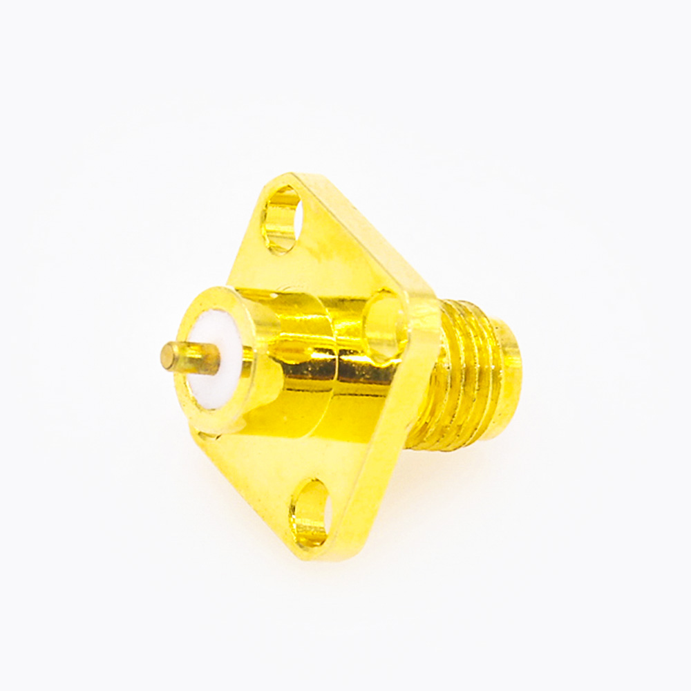 SMA 4孔法兰连接器母头直式PCB安装焊板